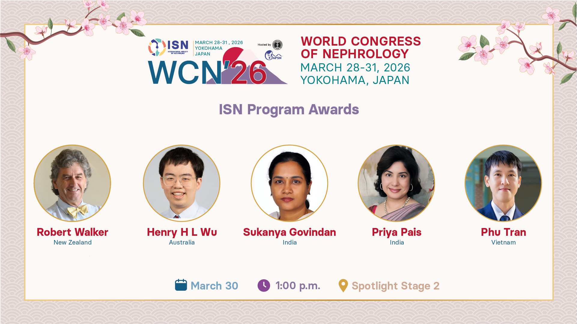 Session description: Recent participants in the ISN Fellowship and Mentorship Programs present their winning abstracts, and their research achievements celebrated ISN Program Awards are generously sponsored by the Japanese Society of Nephrology